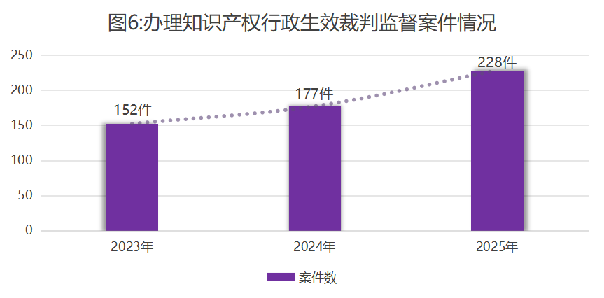 1.加强行政生效裁判监督。办理知识产权行政生效裁判监督案件228件,同比上升28.8%。其中商标类案件181件,专利类案件31件,垄断类案件12件,其他涉知识产权案件4件。