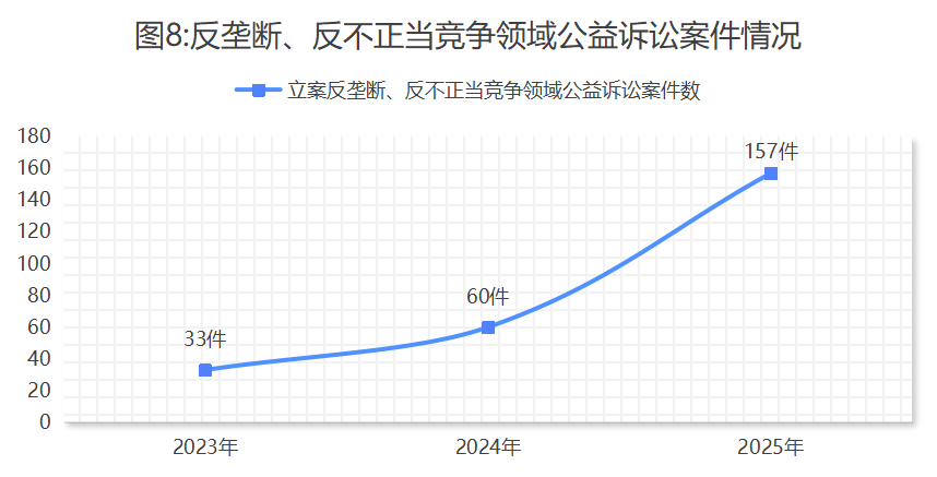 3.强化反垄断和反不正当竞争监督。立案反垄断、反不正当竞争领域公益诉讼案件157件,同比上升1.6倍,其中反垄断领域31件,反不正当竞争领域126件。