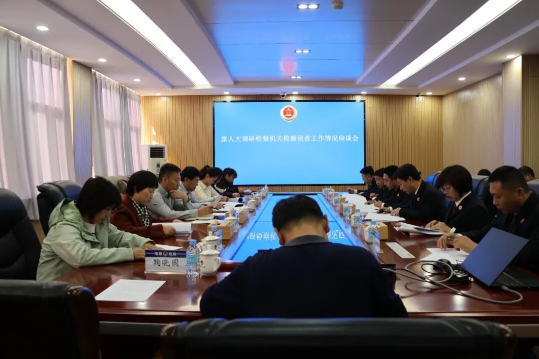 调研组实地调研了旗检察院控申大厅、办案中心,并召开座谈会。座谈会上,张晓峰从检察侦查工作开展情况、存在的问题以及下一步工作计划等方面向调研组进行汇报。随后,与会人员进行座谈交流,人大代表围绕调研内容对检察侦查工作提出了针对性意见建议。