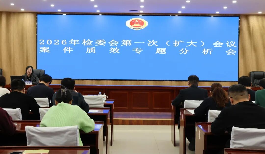 为深入落实“业务管理、案件管理、质量管理”一体化要求,推动“高质效办好每一个案件”落地见效,2026年1月13日,喀喇沁旗人民检察院召开2026年度检察委员会第一次(扩大)会议,以案件质效为核心开展专题分析研判。会议立足2024-2025年案件评查数据,系统复盘办案质量、效率与效果,精准部署改进措施,为新一年检察工作高质量发展锚定方向。院党组书记、检察长隋亚靖主持会议,检委会委员和业务部门全体检察人员参会。