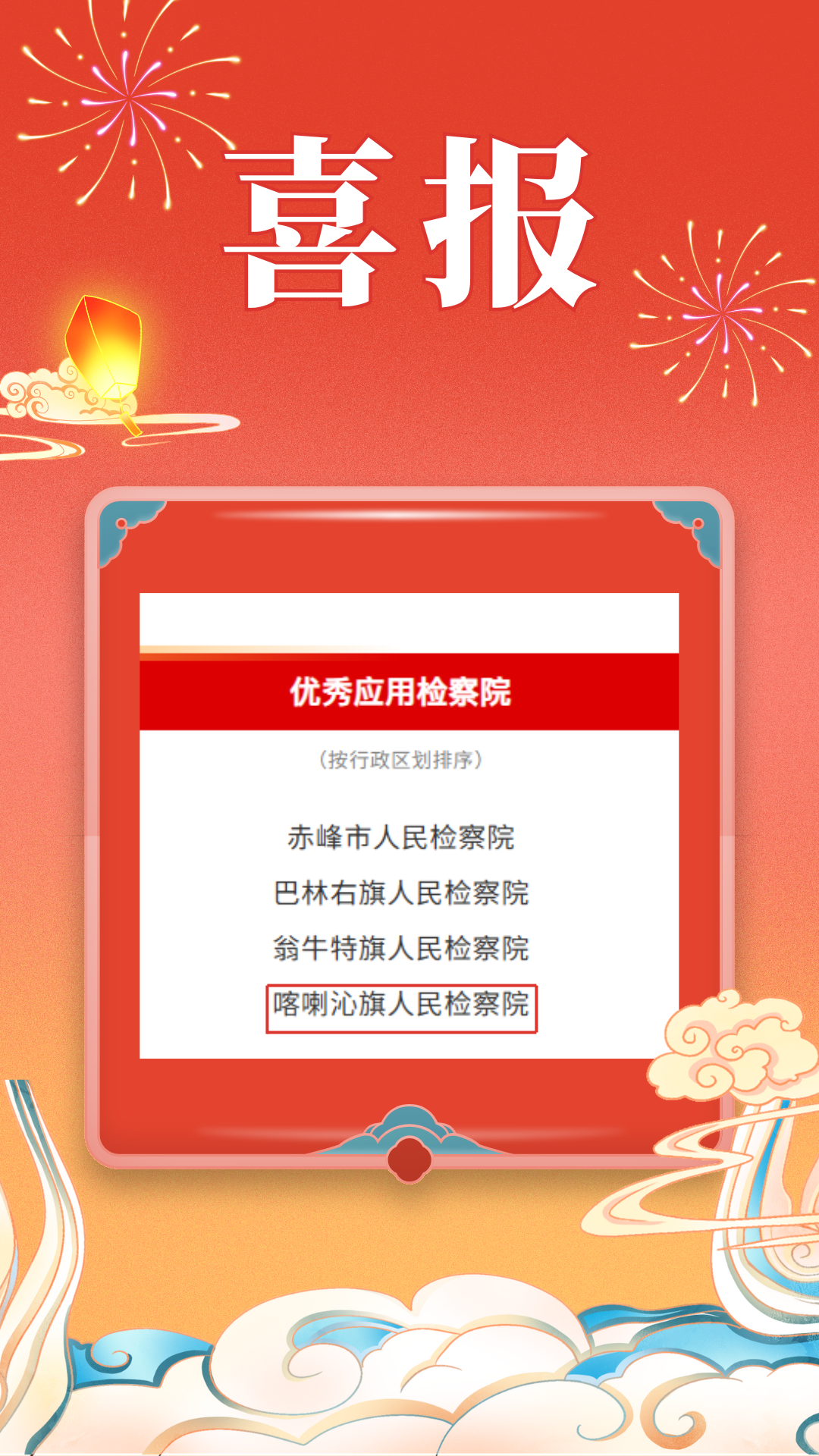 喜报丨喀喇沁旗人民检察院在2025年全区检察机关大数据法律监督模型应用中获评“优秀应用检察院”