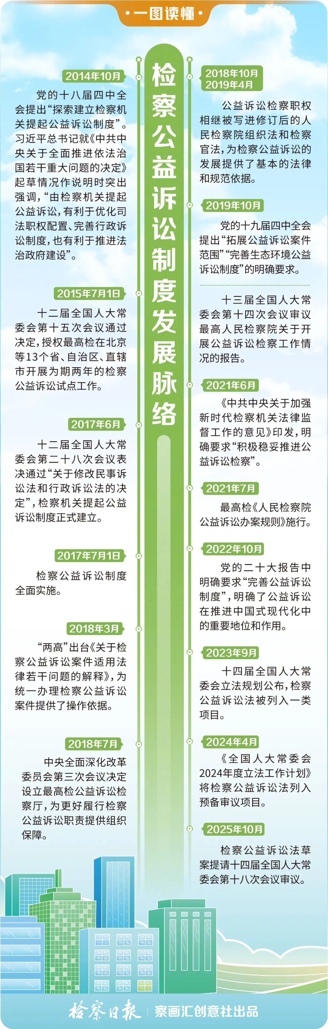 2014年10月,党的十八届四中全会提出“探索建立检察机关提起公益诉讼制度”,为这项具有中国特色的司法制度按下了启动键。基于十年探索实践取得的良好成效,检察公益诉讼制度已成为检察机关携手各方共护公益、共促治理的重要依托。