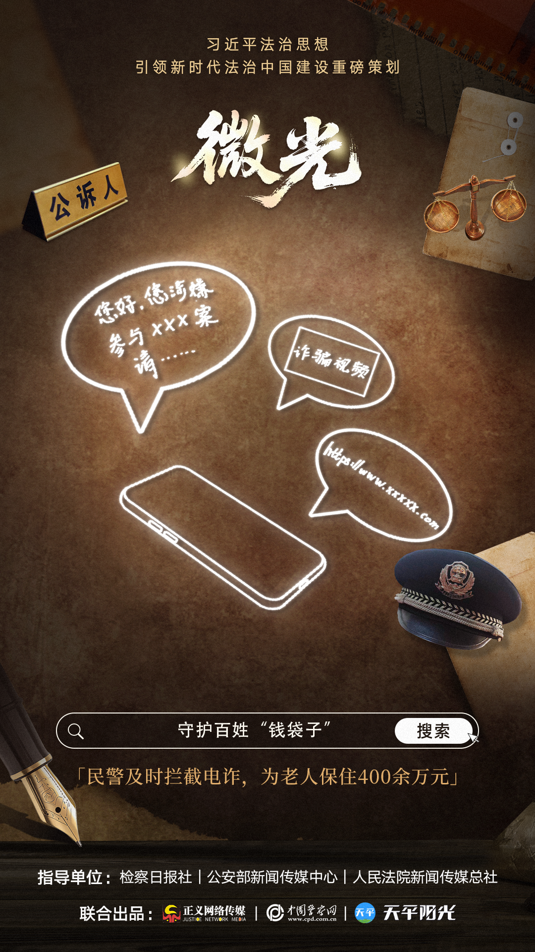 为深入贯彻落实习近平总书记对全面依法治国工作的重要指示精神,在中国行业报协会的支持下,检察日报社、公安部新闻传媒中心、人民法院新闻传媒总社联合推出“习近平法治思想引领新时代法治中国建设重磅策划”《微光》。这是三家权威法治新闻单位首次深度协同、联合打造的重点策划。