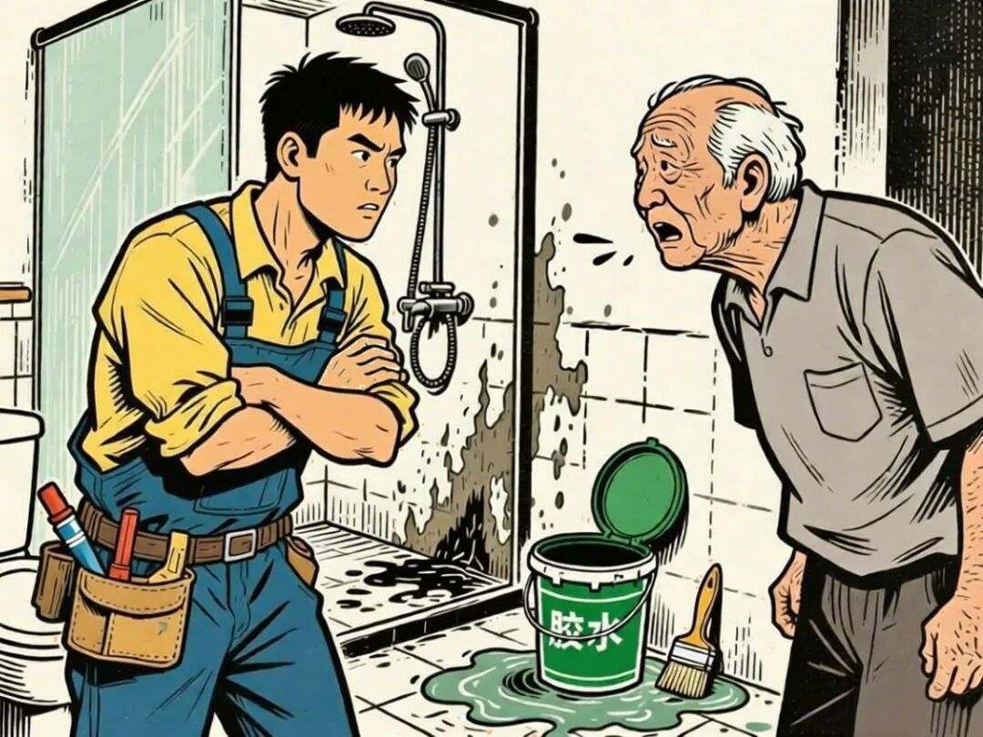 2022年的一天,家住上海的王大爷发现家中卫生间的淋浴房墙面漏水,于是在网上联系了一家自称用“进口胶水”防水补漏的商户,预约上门维修。